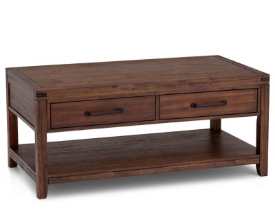 Rustic coffee table and end table. The river valley is built using solid, lightweight yellow poplar wood and clad in dark brown birch veneers featuring distressed touches that become stronger near its feet. Furniture row® living features a wide line of living room furniture including coffee tables such as the paseo coffee table. The tabletop is made from solid pine wood and has a butcher block style with visible wood grain and knots for a rustic, antique look. Big lots has a wide selection of affordable coffee tables available in all kind of styles.
