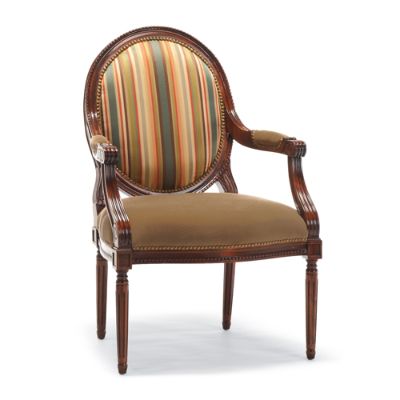 Crafted of solid european oak, it features the iconic oval back, tight raised seat, corner medallion molding and turned legs as its regal ancestor.